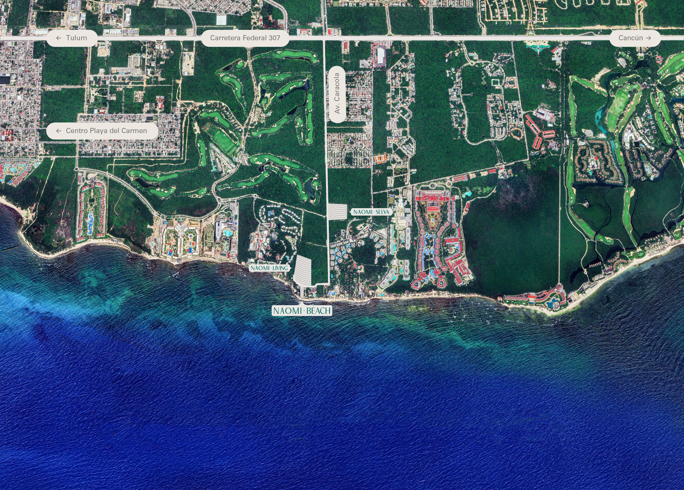 Varias décadas de grandes inversiones, nacionales y extranjeras, la han convertido en la zona con la mejor infraestructura turística del país. La Carretera Federal 307 Cancún-Tulum es una de las mejores autopistas del país. Es la vía de acceso a todas las atracciones de la zona conectando con la avenida Xcalacoco donde se sitúa Naomi Selva, a pocos minutos de la playa Xcalacoco.